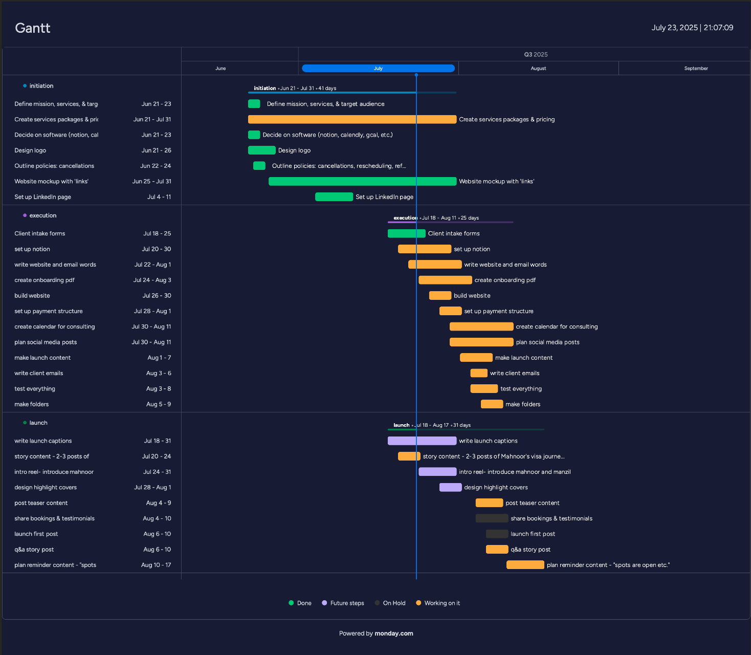 organized tasks, timelines, and deliverables in Monday.com to keep everything on track
