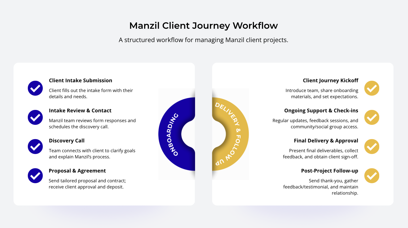 - designed the process — developed the client intake system and brand task list to streamline onboarding and visual identity